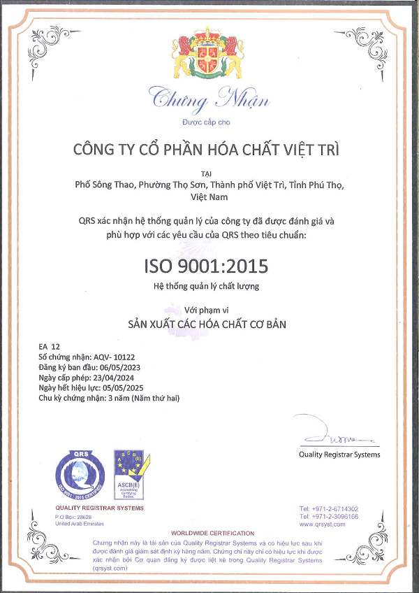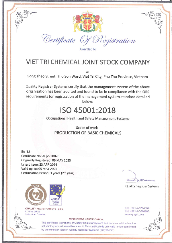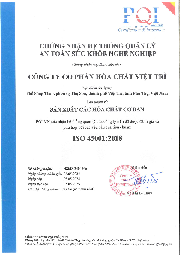 Ngày 08 tháng 10 năm 2025, Công ty Cổ phần Hóa chất Việt...